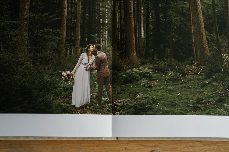 Digitale fotobestanden zijn super om te delen met je dierbaren of om op een regenachtige dag nog eens rustig stuk voor stuk door te kijken. Maar het is in mijn ogen echt verre van romantisch om je trouwfoto’s bij iPad-licht te bekijken. Of nog erger, achter je computerdesk. Met je de to-do lijst die naar je staart en omringt door allemaal papieren en je administratie. Ik vind dat de foto's waar jullie in geïnvesteerd hebben meer verdienen dan dat.
